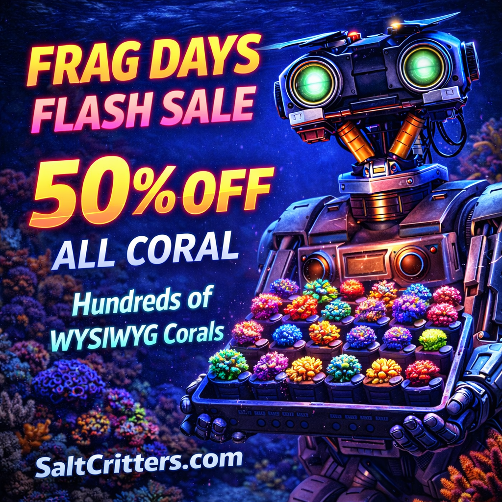 Welcome to SaltCritters, your go-to online destination for premium live coral and anemones for reef aquariums. Family owned and operated, we offer one of the largest selections of vibrant, healthy saltwater corals available online. Shop stunning Zoanthid frags, colorful LPS coral, Ultra Rock Flower Anemones, and more—hand-selected and aquacultured with care. Whether you're building your first reef tank or expanding a showpiece system, SaltCritters makes it easy with unbeatable prices, fast shipping, and our 5-day Stay Alive Guarantee. Don’t forget to check out our exclusive reef aquarium T-shirts, coral frag glue, and seahorse feeding stations!