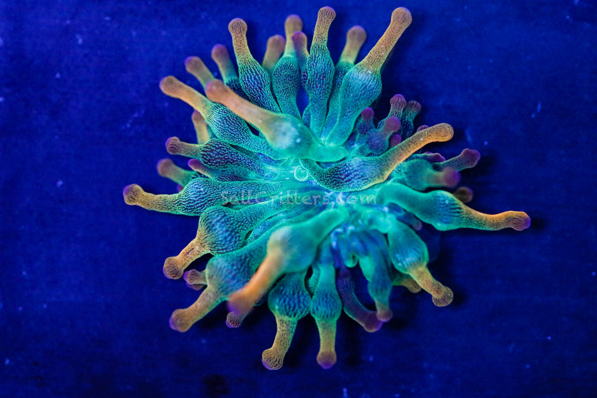 The BTS Holy Grail Bubble Tip Anemone is a true showpiece anemone prized for its intense coloration, glowing tips, and high-end collector appeal. This premium Bubble Tip Anemone features vibrant contrast between its rich base color and bright, eye-catching tentacle tips that absolutely pop under blue LED reef lighting.