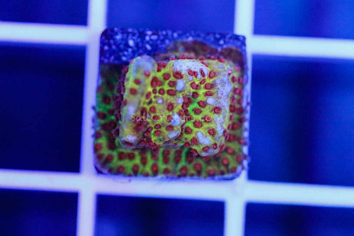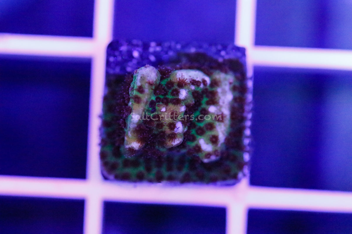 Samples are pictured. As each frag is unique, your specimen may vary and may not match the exact appearance of the photos provided. Squares are 9/16" inside to inside and the white edges are 1/16".